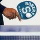 Personalized ping pong paddle with your name and family name initial and team or slogan in white on dark blue on one side and on a red background on the other side. Reads Roberts S The team to beat. Personalize this bold sports style paddle bat with your own name and initial and team name or add a slogan. Designed by www.mylittleeden.com on zazzle.
