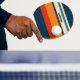 Esta pá de ping personalizada apresenta uma paleta de cores retrorativa com uma fonte de tendência legal.