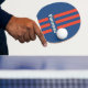Raquete De Ping Pong Retro Red & Blue Three Pin Stripes with Name