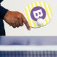 Bright summery yellow and white stripes with big purple circle for your initial.