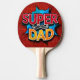 Ping Pong Paddles do Super Pai Mustache Moderno Grunge Ping Pong Paddles apresenta o texto "Super Pai" na tipografia moderna vermelha e amarela, em um fundo azul e vermelho, acentuado com bigode. Presentes para Pai de aniversário, Dia de os pais, Natal, feriados e muito mais. Criado pelo Evco Studio www.zazzle.com/store/evcostudio