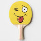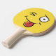 Uma pá de pingue-pongue engraçada mostrando um rosto provocador com a língua para fora. Enfrentem o seu adversário com esta hilária pingue-pongue e avisem-nos que terão de intensificar o seu jogo se quiserem vencê-lo.