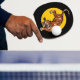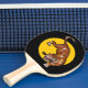 trabalho de arte decorativo de um grande tigre riscado asiático se agachando através de um grande sol ouro em uma pega-pingue-pongue.
