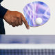 Cor-de-rosa e azul rodopados com sombras brancas a criar assombradas de púrpura