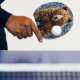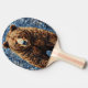 Arte vibrante que retrata um urso com um rico casaco de pelo texturizado, colocado contra um fundo de retalhos com tons azuis e cinzas. O urso permanece imponente e realista, capturando a atenção com suas características realistas.