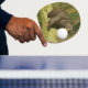 Raquete De Ping Pong Urso Preto a Passar num Tronco de Árvore