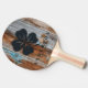 Raquete De Ping Pong Worn Blue Wash Wood Four Leaf Clover with Name