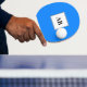 Design azul personalizado com etiqueta quadrada; modelo de texto personalizável para o seu monograma