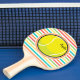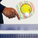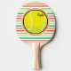 design de tênis de bola legal e fofinha com um padrão de listras vermelho, laranja, amarelo, verde, azul, branco. presente de excelente para jogadores de tênis ou fãs de esportes!