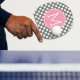 Raquete De Tênis De Mesa Bolinhas rosa e Cinzas com monograma personalizado