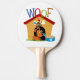 Um cachorro fofo com uma bola e um prato de comida, uma casa de cachorro, e texto colorido que lê WOOF em T-shirts, capuzes, canecas, bolsas, cartões, autocolantes, correntes-chave, botões, ímãs, conselhos de apagar a seco, capas e capas eletrônicas, placas de papel e guardanapos, e muitos outros itens de design de cães!