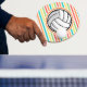 design de vôlei branco legal e fofo com um padrão de listras vermelho, laranja, amarelo, verde, azul, branco. presente de excelente para jogadores de vôlei ou de praia ou fãs de esporte!
