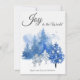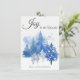 Rato de Canto Azul Elegante Azul de Cores Aquáticas. Três camundongos azuis cinzas cantando Joy to the World em frente à silhueta azul de uma floresta ao lado de uma Árvore de Natal azul decorada com bolbos e uma cadeia luminosa brilhante. Altere a mensagem do cabeçalho para suas necessidades e adicione seu nome de família para personalizá-la ainda mais.