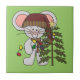 Um rato adorável do Natal em um boné de meia vermelho pôr a corda de luzes de Natal sobre a árvore do feriado em t-shirt do feriado do tema do rato, canecas, cartões, etiquetas, sacolas, ímãs, chaveiro, ornamento e caixas da lembrança, pulsos de disparo de parede, e outros artigos do feriado.