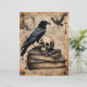 This scrapbook paper seems to be a page from a book of magic--an old parchment sheet with a raven perched on a skull on a stack of old books, with faded text, and drawings of another raven and skull. Wonderfully arcane Gothic imagery! The back is a plain, grungey paper texture, without images or text.