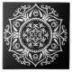 Esta mandala branca senta-se sobre um fundo preto. Parte da Coleção Rosenn Mandala.