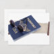 Passaporte azul necessário quando se viaja entre fronteiras, uma rede para cordar entre dois objetos sólidos e um par de óculos escuros prontos para férias