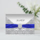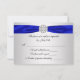 Elegante cartão de resposta RSVP de casamento real azul e prateado com bela fita de diamante azul real em um elegante fundo de renda prateada. Você pode personalizar facilmente essas lindas placas RSVP azuis reais para seu evento simplesmente adicionando seus detalhes no estilo de fonte e na redação de sua escolha. Esta é uma design impressa sem fitas verdadeiras, diamantes, rendas, etc.