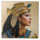 "Realismo de Cleópatra VII: Um Retrato". Uma renderização semelhante à vida de Cleópatra VII mostra-a com um nariz proeminente, olhos em forma de amêndoa e um queixo forte. Seu cabelo, trançado e adorado com ouro de penas, complementa o seu diadema de ouro real em forma de urubu, que simbolizava pureza e maternidade, e também o eterno ciclo de morte e renascimento. Os brincos de pérola e um colar intricado reforçam a presença da rainha com um olhar inteligente que reflete o seu legendário carisma e sabedoria.