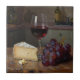 Indulge in the sophisticated allure of this masterful still life painting that captures the essence of refined leisure. A glass of deep crimson red wine gleams beside a wedge of creamy gourmet cheese and a lush bunch of purple grapes, all arranged on a warm wooden surface with bottles softly blurred in the background. Rich textures, dramatic lighting, and earthy tones create an inviting, elegant mood perfect for wine enthusiasts and food lovers.