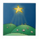 Caracterizando uma ilustração bonito dos desenhos animados de um rebanho dos carneiros que vagueiam algumas colinas verdes bonitas, sob a estrela que conduzem os 3 homens sábios ao bebê Jesus. Ilustração por Jojo Kneebone - Aka MuffinPuffART!