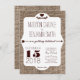 Recebendo Convites para Casamento de Impressão de Burlap Hitchch com um design de estilo tipográfico moderno, com um pequeno coração no topo e uma seta em torno do texto "ficar preso". O burlap é apenas um design impresso, não um tecido real. Também está nas costas. Estas são excelentes para casamentos no campo, casamentos no celeiro, e qualquer um que esteja procurando por um anúncio de casamento temático.