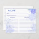 Cartão de receita floral botânico de hortênsia azul para chá de panela de noiva com tema de jardim, 'Algo azul antes de eu fazer'.