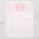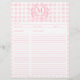 Folha de receitas do Monograma Floral de Gingham Floral de Blush