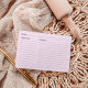 Espessura de 18 pt / Gramatura de 120 lb. Branco suave, textura delicada.