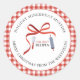 Receitas de Feriados Etiqueta para Presente de Comida Caseira... Se você estiver presenteando os destinatários do seu cartão com um dos nossos cartões de Natal "Receitas de Feriados" este ano, *E* o presente de comida real que é exibido no cartão de receita também, aqui está uma etiqueta para presente de comida com texto de exemplo que diz: "Bolinhos de Mincemeat de Feriado... Feliz Natal dos Westfields." O design da etiqueta adesiva de 3 polegadas apresenta uma borda xadrez vermelha e branca com tema de feriado em torno do logotipo Receitas de Feriados, completo com o grande laço vermelho cercando um batedor de assar e um rolo de massa. O texto de exemplo na etiqueta pode ser rapidamente revisado com suas próprias informações usando o modelo de personalização. Minha avaliação desta deliciosa receita de bolinhos e fotos adicionais estão em https://