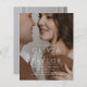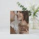 O design apresenta uma interface e conecta elegantemente os nomes dos casais, que são exibidos em uma fonte serif grande para um eterno e aparência sofisticada. A data do casamento está lindamente escrita na caligrafia, acrescentando um toque gracioso ao layout. O pano de fundo do convite mostra uma foto do casal, criando um sentimento pessoal e íntimo enquanto se mistura perfeitamente com a tipografia e a estética geral.