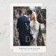 Nossos anúncios de casamento chic e modernos são a maneira perfeita de deixar amigos e familiares saberem sobre sua elopeia, cerimônia secreta ou casamento privado! Sua foto de casamento vertical favorita é sobreposta por uma tipografia branca transparente que soletra "Newlyweds", com seus nomes, data de casamento e local exibidos em uma borda inferior branca. Adicione uma segunda foto às costas com uma nota pessoal — perfeita para agradecer aos amigos e à família, para que saibam sobre a sua cerimônia, ou para anunciar uma recepção ou festa para vir.