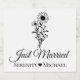 Celebre seu grande dia com esta etiqueta personalizada de licor com "Recem casados" em um design de casamento de girassol preto e branco. As flores silvestres desenhadas à mão adicionam encanto rústico a este aspecto floral minimalista — perfeito para flores silvestres boho, botânico elegante ou casamentos florais de campo. Detalhe de excelente para jardim de primavera, verão ao ar livre ou celebração minimalista de flores de queda.
