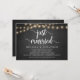 Recém-casados, Anúncio de Casamento Fuga / Convite, em quadro de giz de fazenda rústica, design de luzes de corda. Isso é perfeito para o seu casamento e festa de celebração pós-casamento. Adicione seus detalhes em fonte / letra correspondente.