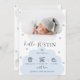 Projetado para nosso Cartão de Anúncio de Nascimento do Bebê recém-nascido, este Cartões de Anúncio personalizáveis apresenta seções de fotos editáveis e fontes decorativas de escrita manual. Itens correspondentes disponíveis.