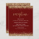 Um valor para o alternativo do ORÇAMENTO em tamanho menor de 4,5 x 5,6" de semirbrilho de 110 lbs, que é de espessura semelhante a um cartão postal (no entanto, não é adequado para uso como cartão postal). POR FAVOR, OBSERVE QUE HÁ UM convite por folha. Receptáculo de Borgonha com Recepção de casamento de Literatura Dourada do Orçamento. Um script moderno para o cabeçalho e o resto do texto que você pode personalizar facilmente, com bordas falsas e reluzentes nas bordas superior e inferior de ambos os lados do ouro.