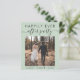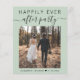 Um elopemento verde de sábio ou anúncio privado de casamento e convite de recepção com sua foto do dia de casamento e "Feliz Sempre Depois da Festa" em uma mistura de simples tipografia e um roteiro de tendências com picos. No verso, personalize o anúncio do casamento e o convite de recepção em mais detalhes, insira o endereço URL do site do casamento para criar um código QR para os convidados digitalizarem suas fotos de casamento, todos os detalhes e para RSVP on-line, e adicione seus nomes em um script semelhante a assinatura.