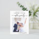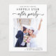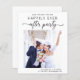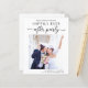 Moderno e amigável, salve o anúncio de data para sua eleição postada ou recepção de casamento privada que apresenta sua foto, "Salve a data para nossa festa feliz" em uma mistura de simples tipografia e um roteiro de tendências com baloiços e seus primeiros nomes, data de recepção e local. No verso, forneça mais detalhes e adicione seus nomes em um script semelhante a assinatura.