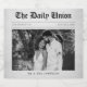 Legal artigo de jornal recepção de casamento rótulos de garrafa de vinho. Personalize-o com os detalhes do evento e uma fotografia da noiva e do noivo.