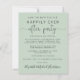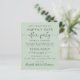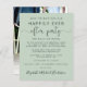 Anúncio de salva data verde-sage acessível para uma recepção ou festa para celebrar seu casamento íntimo ou casamento privado. A frente apresenta "Salve a Data Para Nossa Festa Feliz para Sempre" em uma mistura de tipografia simples e um script elegante com floreios, seu anúncio de casamento personalizado, detalhes da salva data da festa ou recepção e seus nomes em um script semelhante a uma assinatura. O verso apresenta sua foto de casamento favorita, primeiros nomes e datas do casamento e da recepção.