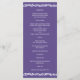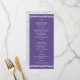 Cartões de cardápio Ultra Violet em roxo e branco com um simples design romântico de videira trará o humor perfeito. Minha obra de arte original de torcer a folhagem em branco e uma borda de lavanda macia na parte superior e inferior da placa de menu - a parte traseira apresenta uma mármore macia com um selo central que consiste nos nomes da noiva e do noivo aninhados em uma coroa botânica correspondente definida em um círculo ultra violeta roxo.