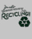 Um texto humorístico que diz: "Você o chama de 'Voltando com meu ex', eu o chamo de... Reciclagem!" Abaixo do texto, há um símbolo de amor reciclagem.