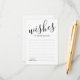 Adicione um toque pessoal ao seu casamento com um moderno guião de casamento e um cartão de desejos. Este cartão de conselho apresenta o título no estilo de fonte preto moderno da caligrafia e detalhes no estilo de fonte preto moderno sans serif em fundo branco. Perfeito para casamento, chá de fraldas, festa de aniversário, chá de panela, festa de solteira e qualquer ocasião especial.