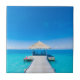 Esta foto caracteriza um sunbather no cais em casas de campo de uma água recorre na ilha de Maldives.