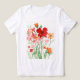 Red and pink wildflowers and green stems watercolor on women's T-Shirt.