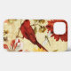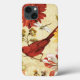 © Lisa Audit / Wild Apple. A beautiful red bird in a floral garden. The flowers are in shades of red, orange, and yellow with touches of white.