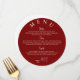 elegant wedding menu, wedding reception menus, circle wedding reception menu, simple wedding menus, classic printed menus, event menu, modern rehearsal menus, daytime wedding menu, Red,