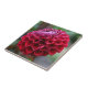 Azulejo cerâmico que mostra a foto de uma floração vermelha de Dahlia. Um design floral adorável! Selecione o tamanho do seu azulejo. Faz uma trivet de cozinha excelente!