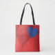 Vermelho denim com coração de jean azul em um padrão estirado.
