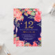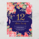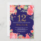 Convite de Aniversário para 12 Floral Vermelho para Menina. Flor Botânica De Aquarela Dourada Glitter. Fundo Azul marinho. Flores Florais De Pêonias Rosa. Crianças, Lady Birthday. Para mais personalização, clique no botão "Personalizar" e use nossa ferramenta de design para modificar este modelo.